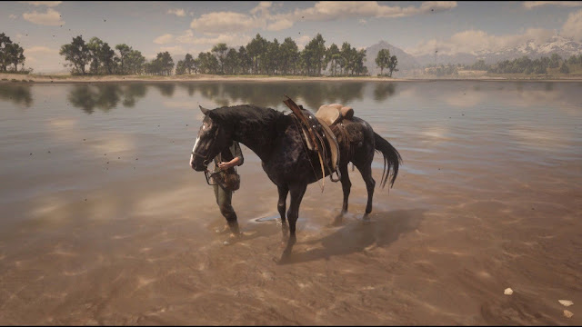 This is the best race horse you can get early if you have the Special or Ultimate Edition. The only downside is the low health and stamina and I did have to revive her once after a gunfight. Because I have such a big imagination, I named her Dancer which is a nod to the great stud Northern Dancer. It was nice to be able to outrun enemies with a super fast horse while learning the controls. I used her as PC's preferred mission mount but she did a little free roaming. I disliked taking her to highly populated areas like St. Denis. People are so pushy and impatient there. It's very easy to get into trouble. I improved over time but the first few trips were harrowing. I should have known it would be her ultimate undoing. We got dumped there late at night after a mission. I managed to run over somebody in the dark and rather than deal with the consequences I chose to load an autosave. Dancer reappeared by the railroad track and I immediately got them both hit by a train. PC somehow survived but Dancer was in bad shape. Rather than just revive her, like an idiot I loaded the autosave not realizing it was a new autosave with a dead Dancer. I could have then just gone back to Valentine to get another one but I was really attached to this Dancer and obviously wasn't thinking that clearly. Too many aggravating things had happened since I last was able to manually save and PC just wanted food, a bath and a good night's sleep so we went off to the stable and got PC his first non free stable horse. RIP Dancer. Sniff.